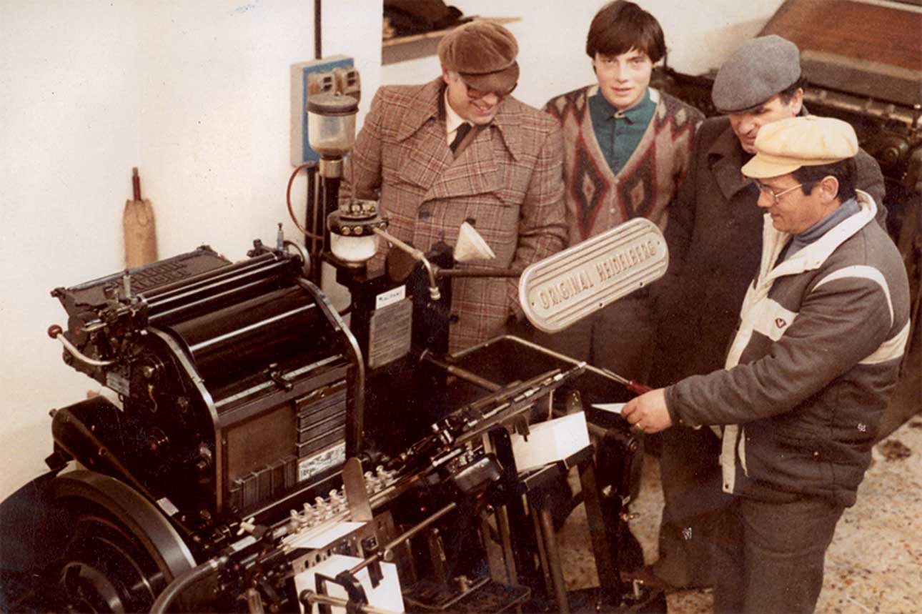 La storia di Arti Grafiche Lapelosa inizia nel 1950, quando nostro padre Antonio, a soli 13 anni, scopre il mondo della stampa e se ne appassiona andando a bottega presso la tipografia Cantarella, l’unica del paese, fra carta, caratteri di legno e inchiostri.